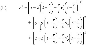 deduce from these two equations the instant of emission t' of a wave which reaches a given point P, of coordinates x,y,z at the instant t, or, which according to I, amounts to